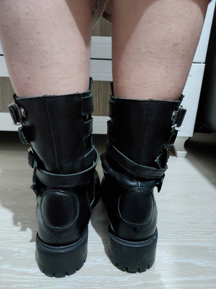 ZARA Tokalı Siyah Deri Gotik Kadın Bot