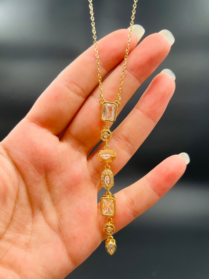 Zarif Altın Zincir Detaylı Uzun Kolye