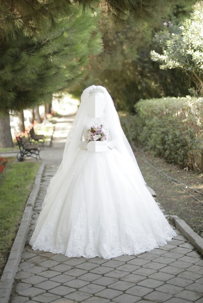 Gelinlik 36 beden, 38de rahat giyebilir. Arkasi iplidir. 1,60-1,70cm boyu olanlara boy ölcüsü tam gelebilir. Kuru temizleme yapilmis, tertemiz kendi hurcunda verilecektir. Gelinlik Sadiklar Tekstil magazasindan alinmis, kalitelidir.