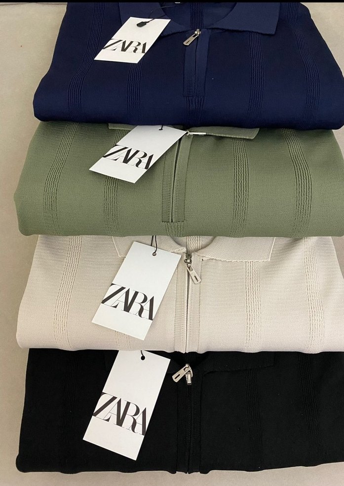 Pamuklu, fermuarlı erkek polo tişörtü. Uzun kollu, bisiklet yakalı ve normal boyda. Beyaz, gri, siyah, lacivert ve haki renk seçenekleriyle günlük rahat stil için uygundur. ZARA etiketlidir.