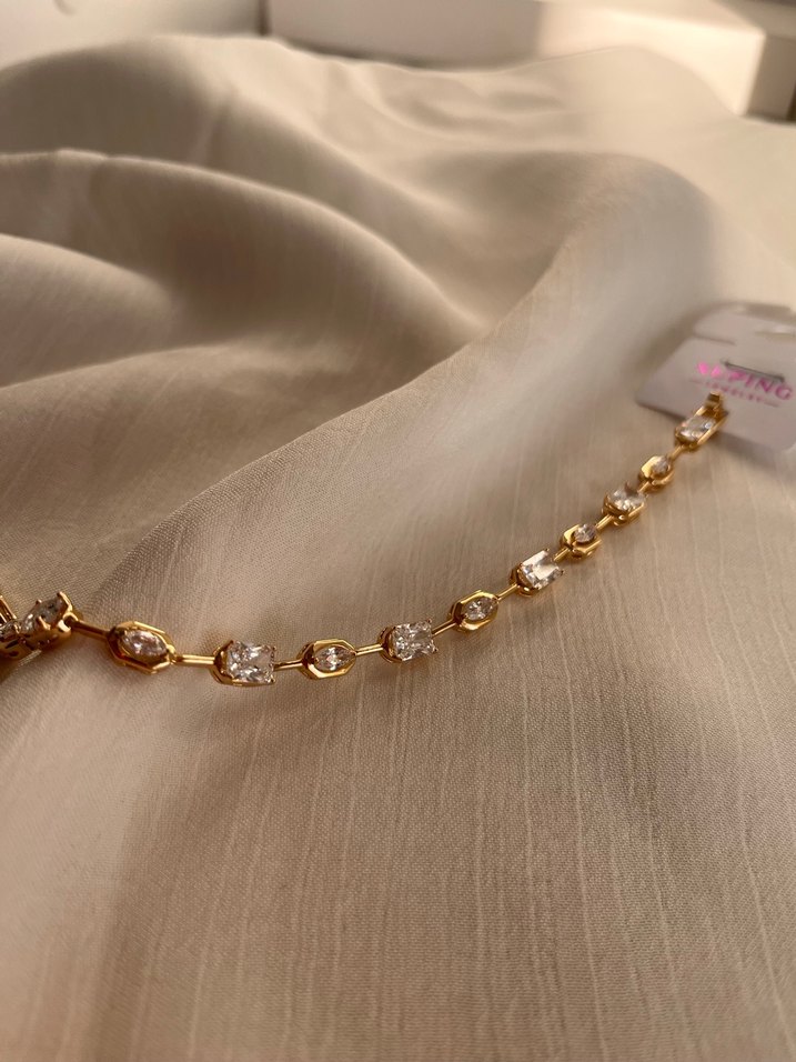 Zarif gold kaplama zirkon taşlı çelik bileklik