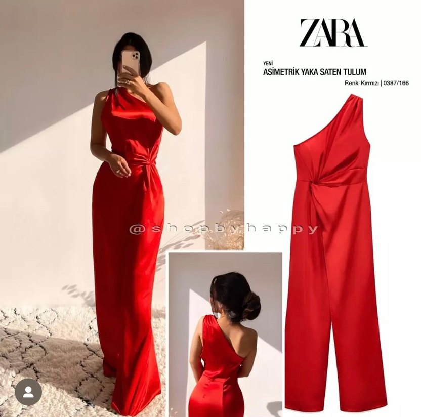 Bir kere giyilmiştir. Parlak saten kumaştan, asimetrik yakalı, drapeli ve straplez kırmızı uzun abiye elbise, şık ve modern tasarım sunar. ✨