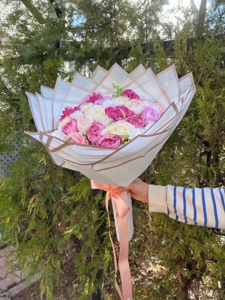 Pastel tonların en şık uyumu… Pembe ve krem renkli güllerin özenle bir araya getirildiği bu zarif buket, romantik ve modern tarzı aynı anda yansıtır. Özel kesim şeffaf ambalajı ve saten kurdelesiyle ilk bakışta fark yaratır.