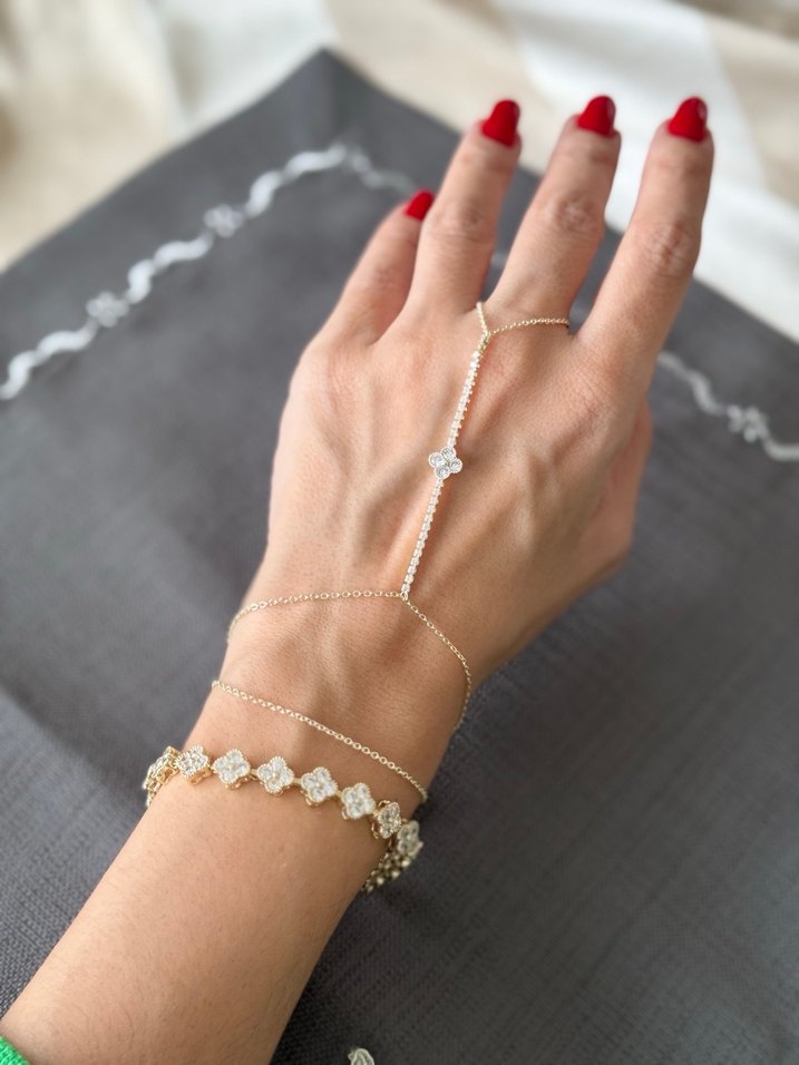 Taşlı yonca altın renk şahmeran. Kararma yapmaz. Elinizde başka takılarla rahatça kombin yapabileceğiniz bir üründür. Bileklik ölçüsü olarak da tüm ölçülere uyumludur. #şahmeran #altınşahmeran #goldşahmetan #accessories #zaratakı #mangobijuteri #bijuteri #shahmaranbracelet #bracelet