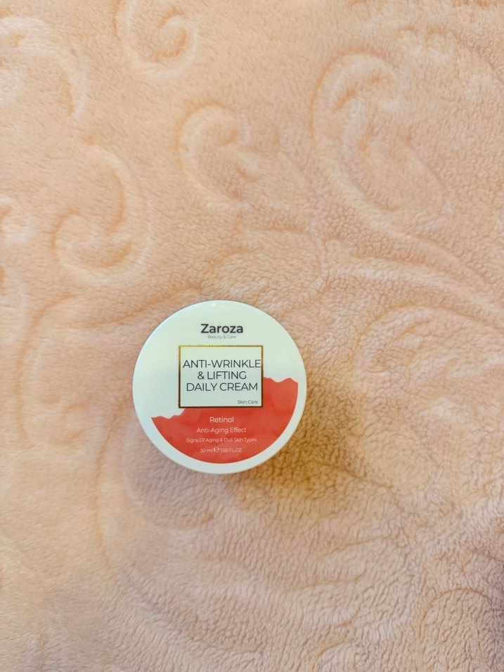 Zaroza Anti-Wrinkle & Lifting Daily Cream, retinol içerir ve kırışıklık karşıtı, cilt sıkılaştırıcı etki sağlar. hiç kullanılmadı kapağı bile açılmadı fakat kutusu mevcut değil marka the mossi london seri zaroza