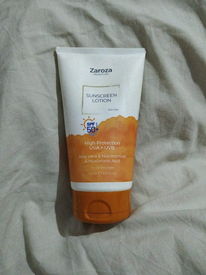 Birkaç kez kullandım yüzüm için%95i doludur. Zaroza SPF 50+ güneş koruyucu losyon, UVA ve UVB ışınlarına karşı yüksek koruma sağlar. Aloe vera, niacinamide ve hyaluronik asit içerir.