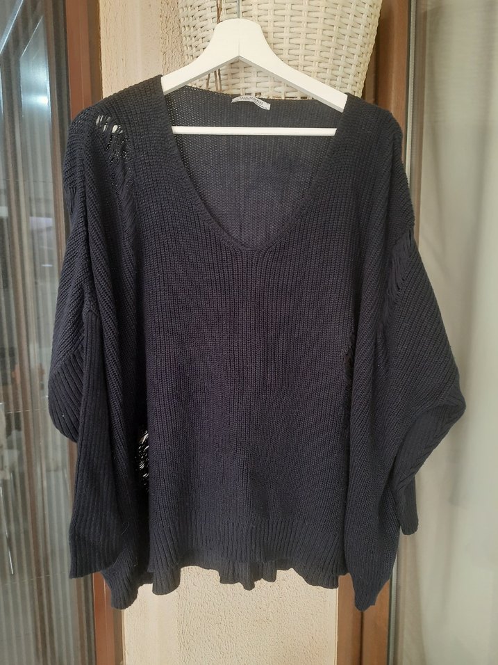 ZARA Lacivert V Yakalı Örgü Kadın Kazak