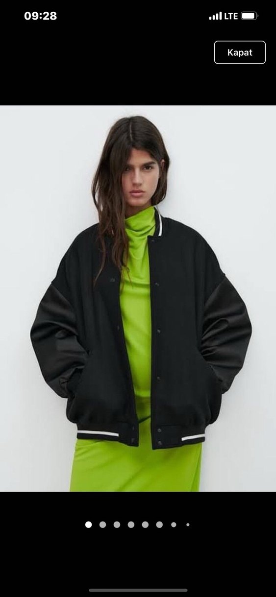 Kolları kalın saten , beden kısmı kase kumaş. 1 defa giyildi. Kolunda hafif bir çekme var. Hiç belli olmuyor fotoğrafını ekledim yine de . Mont gibi de giyilebilir. Etiketi S ama M bedenler içinde gayet uygun. Benim bedenim M bana güzel oldu. İnce değil kalın bir bomber. İyi günlerde kullanın. Yüksek yakalı, uzun kollu ve oversize kesim siyah ceket, yumuşak ve sıcak dokusuyla günlük kullanıma uygun, zahmetsiz şıklık sunar.