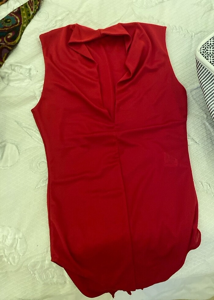 V yaka hiç kullanılmadı ,alttan çıtçıtlı kırmızı polyester kumaş bluz