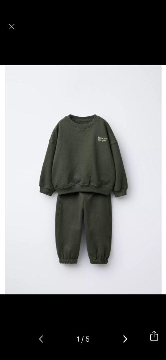 Erkek çocuk için haki renk, rahat kesim, yumuşak ve sıcak kumaştan eşofman takımı. Bisiklet yaka sweatshirt ve lastikli paçalarla konforlu ve sade bir tarz sunar. ♂️ Orijinal zara üründür görseldeki gibi bir sıkıntısı yok Omuzdan aşağı üst boy 34 cm en 37 cm pantolon boyu 41 cm