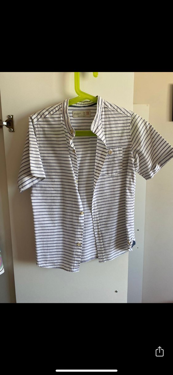 Orijinal..Pamuklu kumaştan, kısa kollu ve yakalı erkek gömleği. Beyaz zemin üzerinde gri çizgiler ve düğmeli ön kısmı ile salaş kesim, günlük sokak stiline uygun.