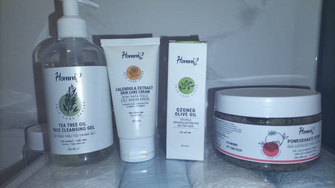 Homni ayçiçeği özlü cilt bakım kremi, shea yağı ve E vitamini içerir. Ozonla zenginleştirilmiş zeytin yağı cilt bakımında kullanılır.