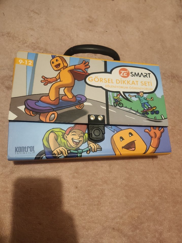 ZE Smart Görsel Dikkat Seti, 9-12 yaş çocuklar için görsel dikkat becerilerini geliştiren eğitici bir settir. Hafif camel renkli kutusunda taşıma sapı bulunur. aldırılıp hiç oynatılmadı öylece kutusunda duruyor.