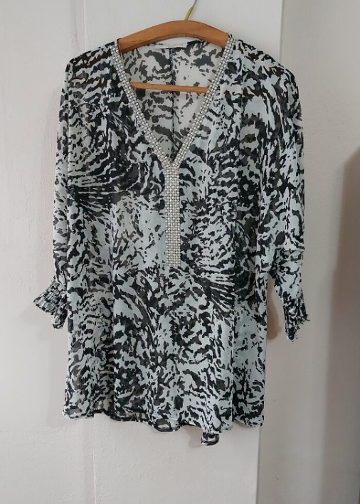 Çok şik şifon kumaştan abiye üst. İçine siyah askili body giyildiginde hatlari kilolari vs asla belli etmez.