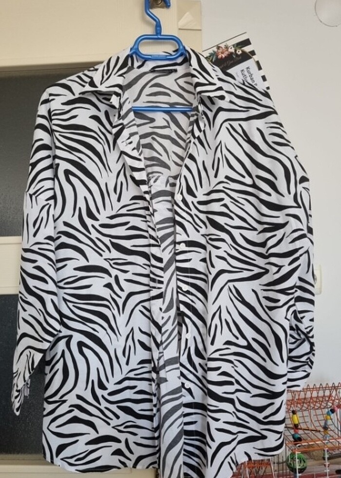 Hiç kullanılmadı kadın zebra desenli geniş uzun kollu gömlek