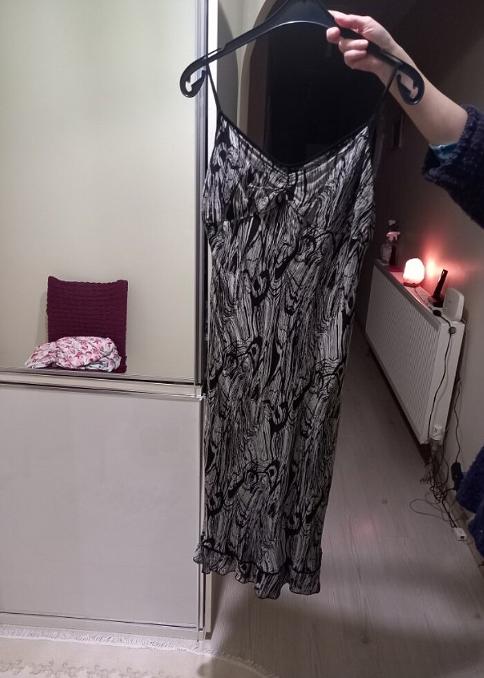 Zebra desenli askılı elbise