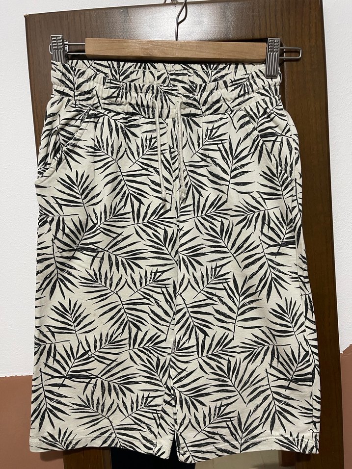 Sentetik kumaştan yapılmış, zebra desenli, ve bol kesim krem rengi şort, rahat ve şık bir günlük stil sunar.