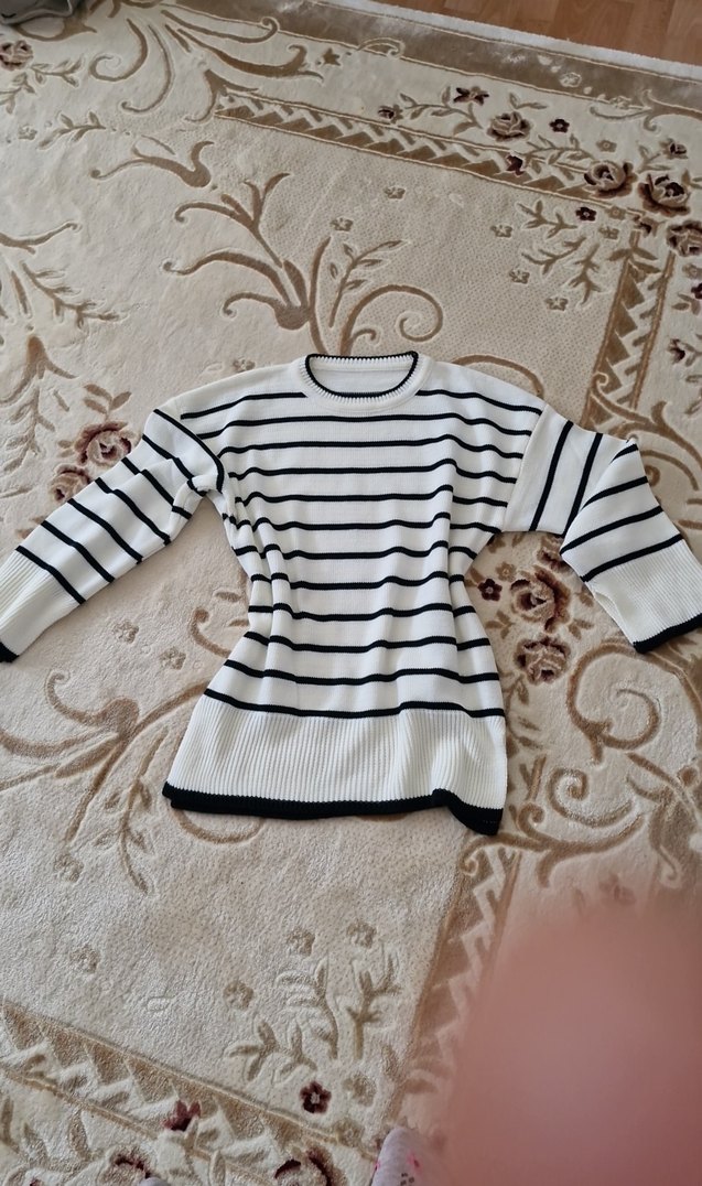 Zebra Desenli Beyaz Örgü Kadın Kazak
