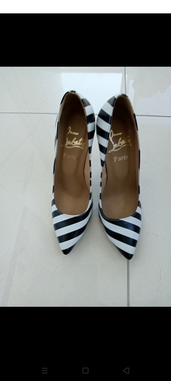 Beyaz renkte zebra desenli, plise detaylı kauçuk malzemeden üretilmiş stiletto topuklu kadın ayakkabısı. Ofis için çağdaş Paris tarzı uygundur.