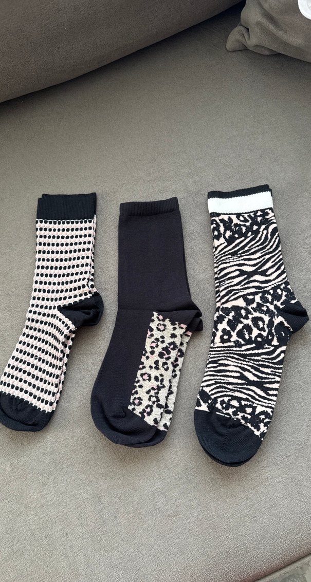 Zebra Desenli Çorap Seti Siyah Gri