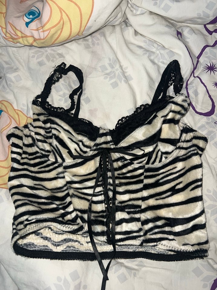 Hiç giymedim sheinden almıştım. L beden. Önünde bağcık var ayarlanabiliyor. #y2k #summer #büstiyer #zebra #oldmoney #shein #anime