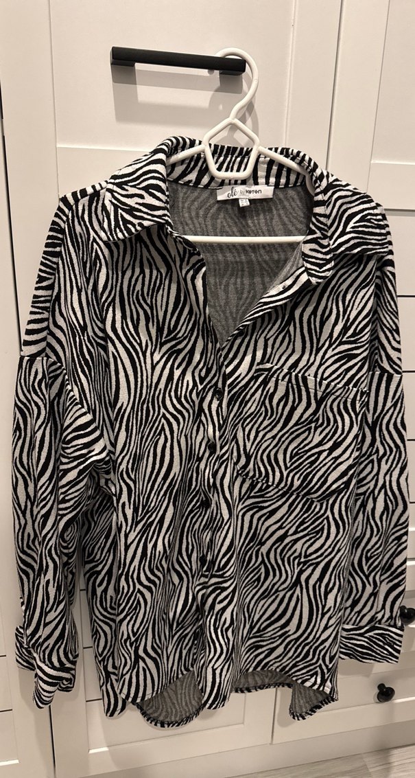 Zebra Desenli Düğmeli Kadın Gömlek Ceket. Hiçbir deformemesi yoktur. Birkaç kez giyildi.