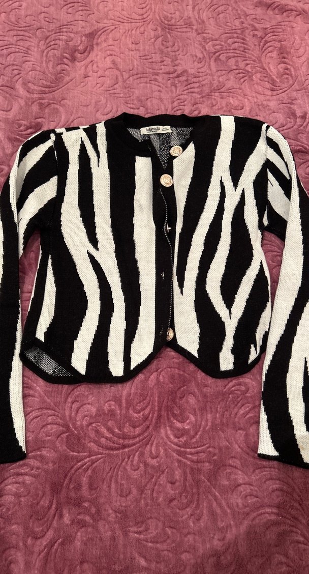 Zebra Desenli Düğmeli Kadın Hırka