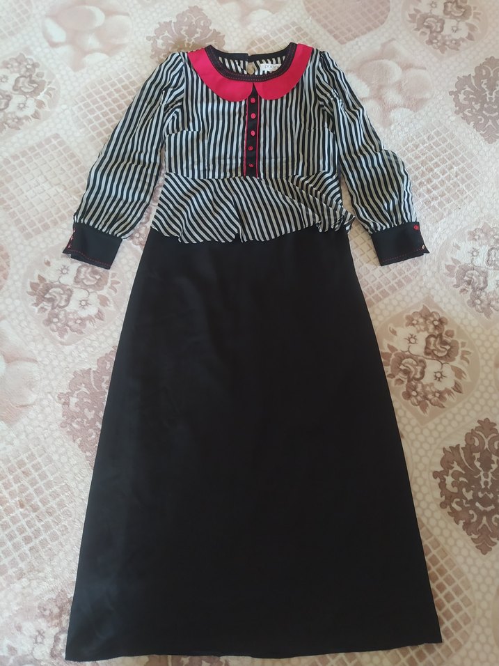 Zebra desenli, düğmeli uzun elbise, ofis için uygun, siyah renk ve gotik tarzda trendy casual görünüm sunar.