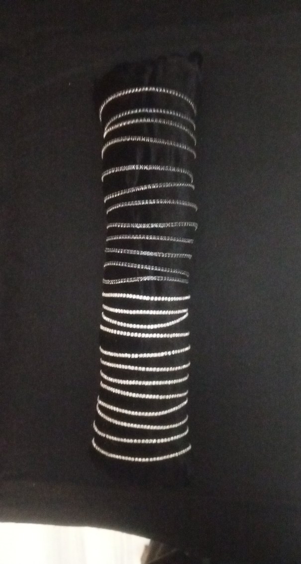 Siyah ve gri tonlarda zebra desenli elastik kadın bileklik, avangart ve karşı kültür tarzında tasarlanmıştır. Adet fiyatıdır