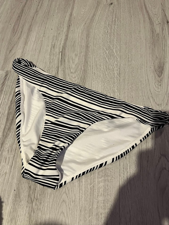 Zebra desenli, pileli ve askılı detaylara sahip, normal midi boyda oturan kadın bikini altı. Bohem tarzıyla plajda rahat kullanım sağlar. ️