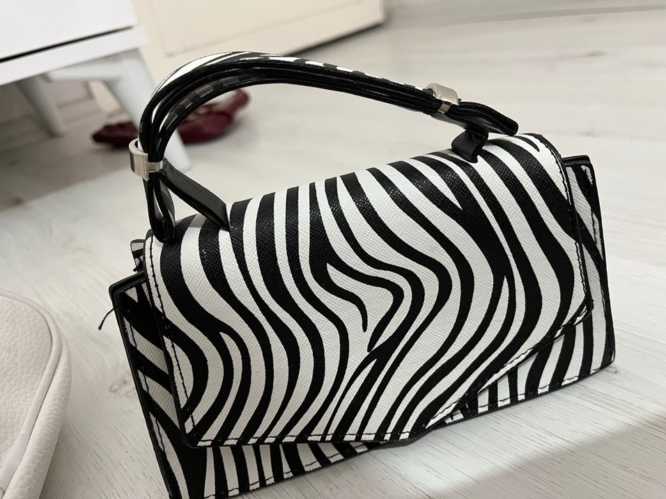 Deri malzemeden yapılmış, zebra desenli ve tokalı kadın çantası. Günlük kullanıma uygun çağdaş bir tarza sahiptir.