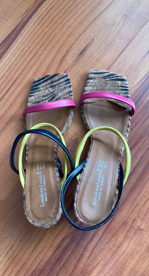 Kadınlar için zebra desenli, pastel renkli çoklu kayışlara ve tokalı tasarıma sahip dolgu topuk sandalet. Günlük kullanım için kauçuk tabanlıdır. Sıkıntısı yoktur topuk boyu 7cm