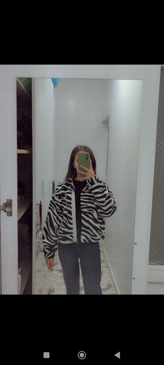 Zebra Desenli Kadın Midi peluş mont ceket