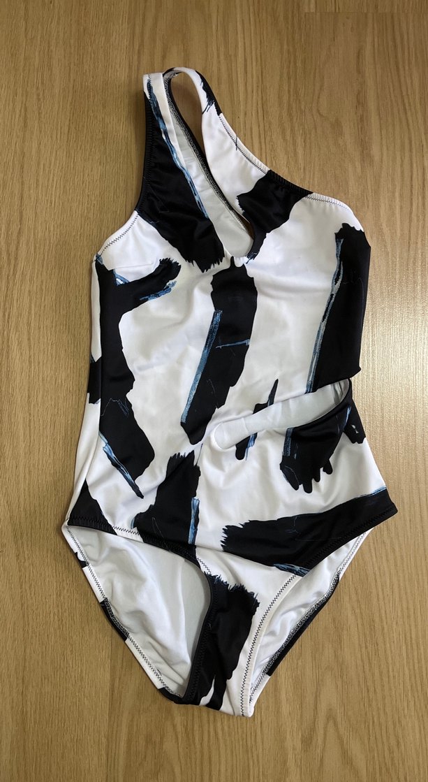 Zebra desenli, kemerli, kısa kesim kadın mayo. İnce askılı, dar kesim ve çağdaş tarzda, açık hava kullanımı için uygundur.