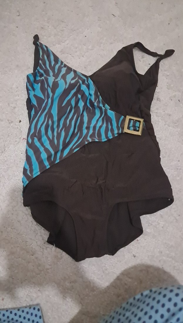Kemer detaylı, zebra desenli kadın mayo. Koyu mavi renkli, askılı ve mini boy, dış mekan için uygun athleisure tarzında.
