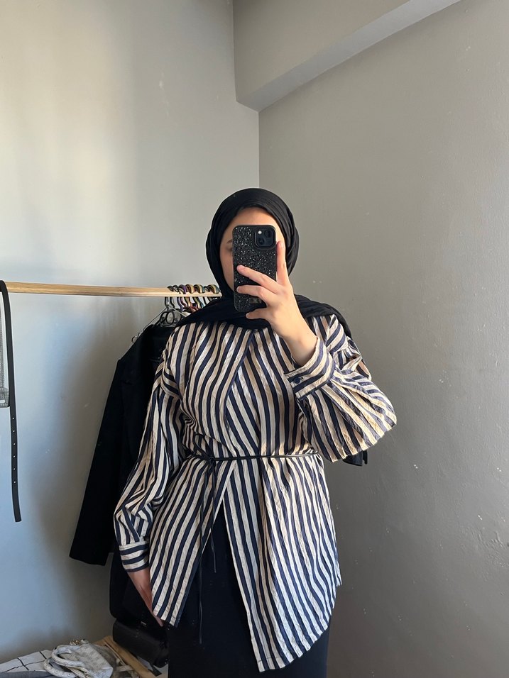 Zebra Desenli Kemerli Uzun Kollu Kadın Gömlek