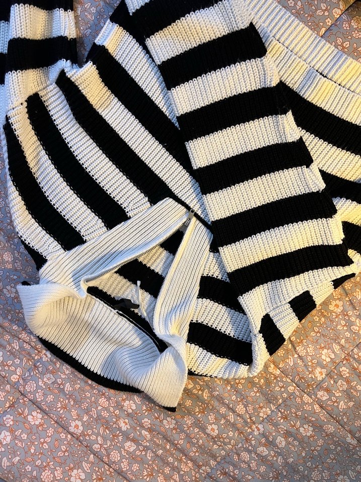 Kadın kazak, zebra desenli, kısa ve fit kesimdir. V yaka ve askılı kolludur, sokak modasına uygun, günlük kullanım için idealdir.