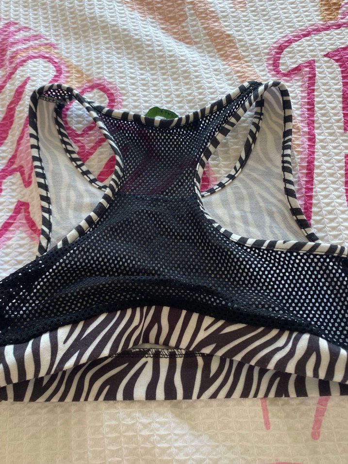 Kısa kesim, zebra desenli spor sütyeni, sırt kısmı file detaylı ve çok renkli tasarıma sahip. Sortu ile birlikte guzel urun