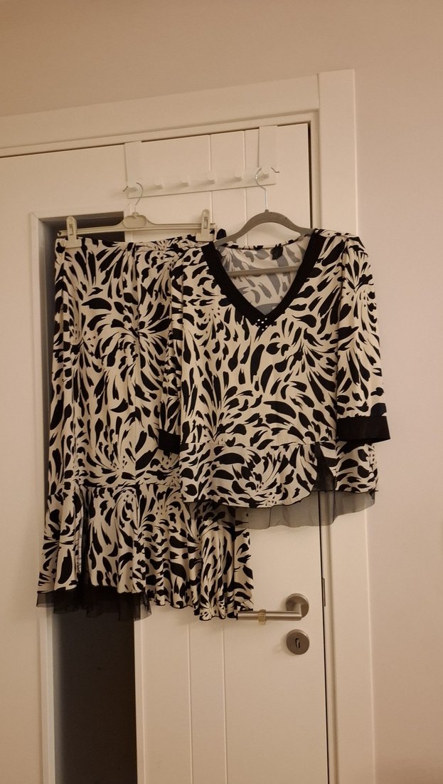 Uzun kollu, bol kesim bilek üstü uzunlukta, siyah gri zebralı desenli kadın alt üst takımı.