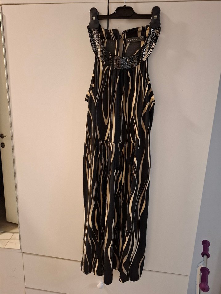 Zebra Desenli midi Askılı Elbise
