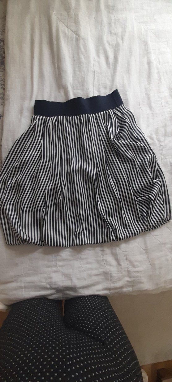 Gri ve beyaz zebra desenli, pilili ve bol kesim midi kadın etek. Sentetik kumaştan üretilmiştir, günlük sokak stiline uygundur.