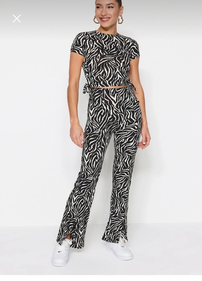 Zebra Desenli Mini Pilili Kadın Kumaş Pantolon