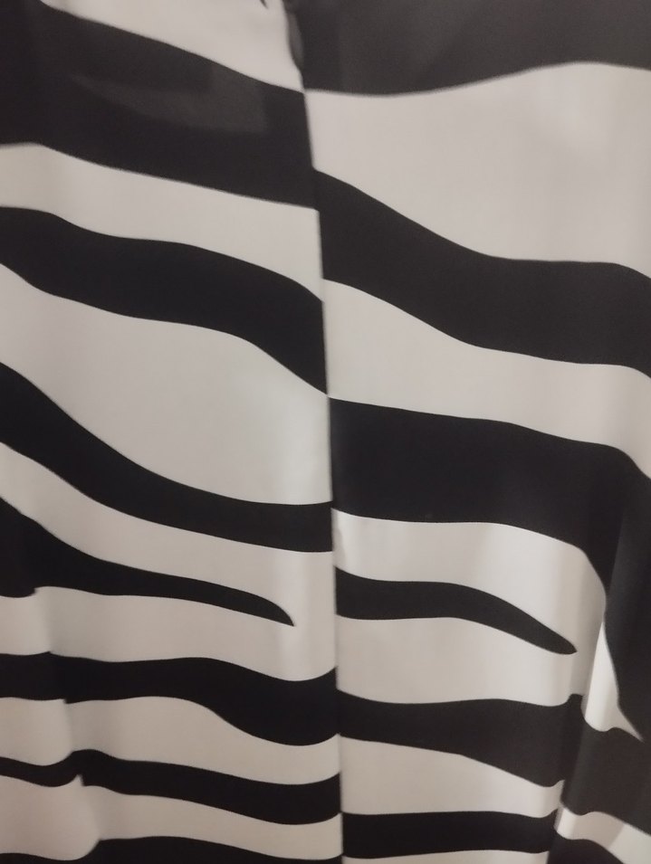 Bu perde, beyaz ve gri tonlarda zebra desenine sahiptir ve cesur çizgileriyle modern bir görünüm sunar. Her odaya şık bir dokunuş katar.