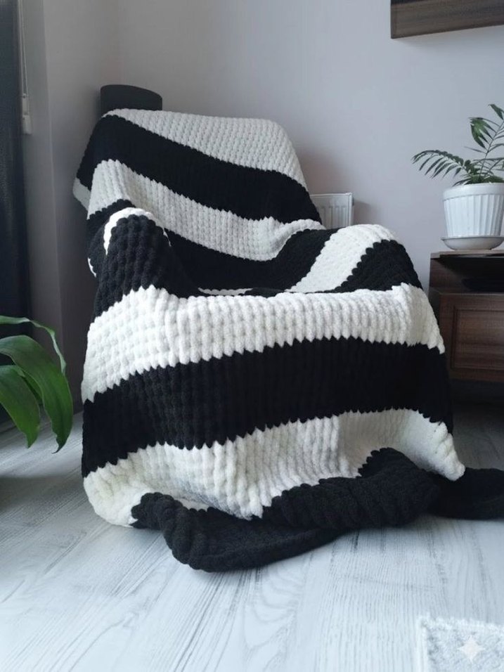Zebra desenli, siyah ve beyaz renklerde, yumuşak örgü kumaştan yapılmış tek çift kişilik battaniye farklı renklerle yapılmaktadır.