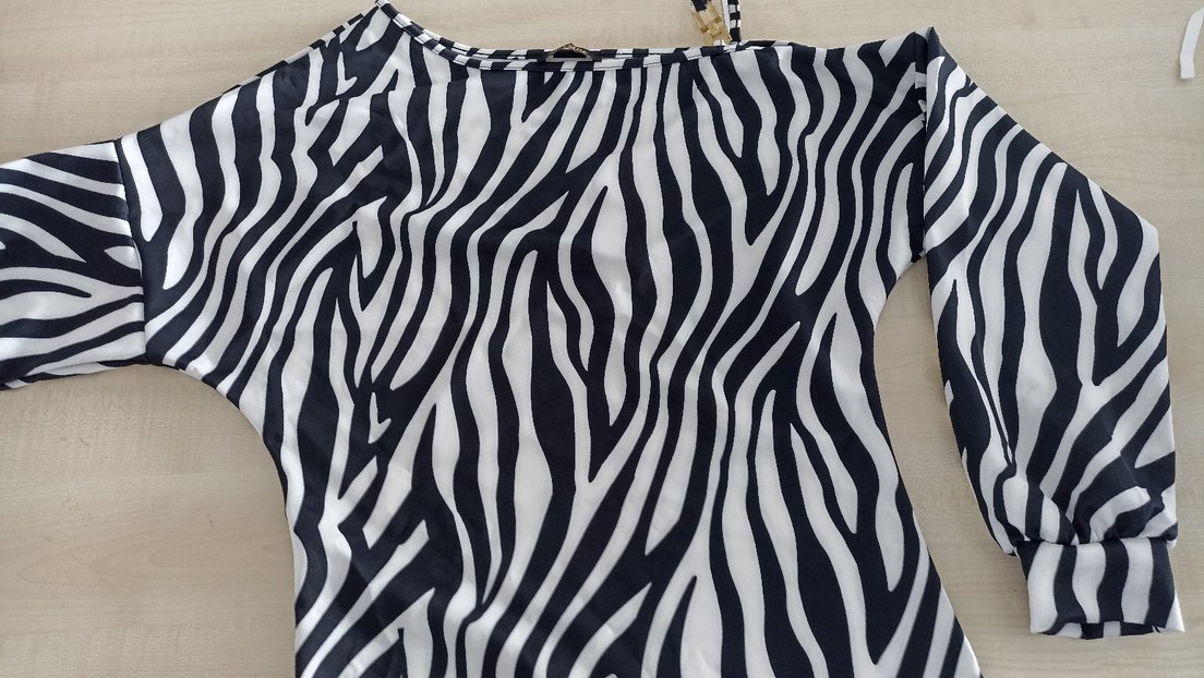 Zebra desenli, pileli ve ince askılı uzun kesim kadın pareo. Günlük kullanım için bohem tarzda uygun.