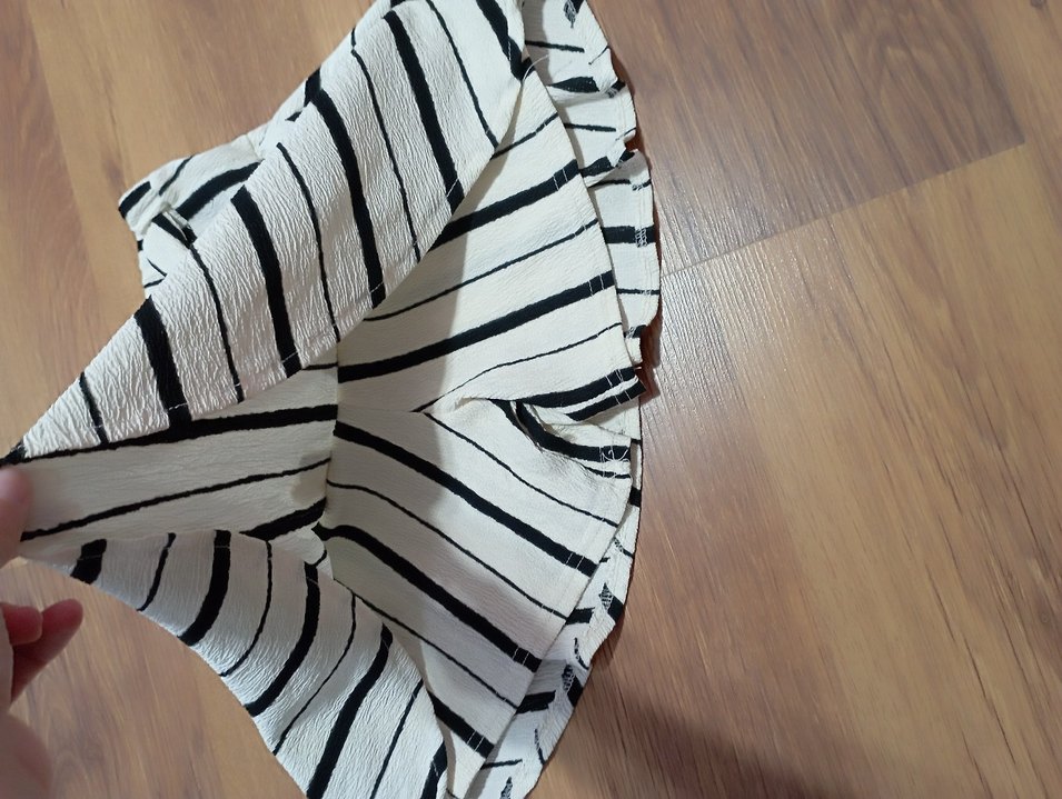 Bu bol kesim hamile eteği, beyaz ve gri zebra desenli pilili tasarıma sahiptir. Kısa boyda ve bohem tarzındadır, günlük kullanım için uygundur.