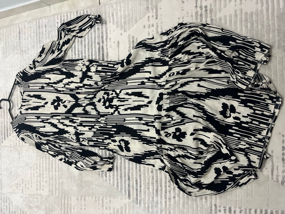 Bu kadın tulumu, zebra desenli ve pilili detaylara sahip. Uzun kollu, tekne yaka ve uzun boylu, gri renkte sentetik kumaştan üretilmiştir. Bohem ve avangart tarzıyla dış mekanlar için uygundur.