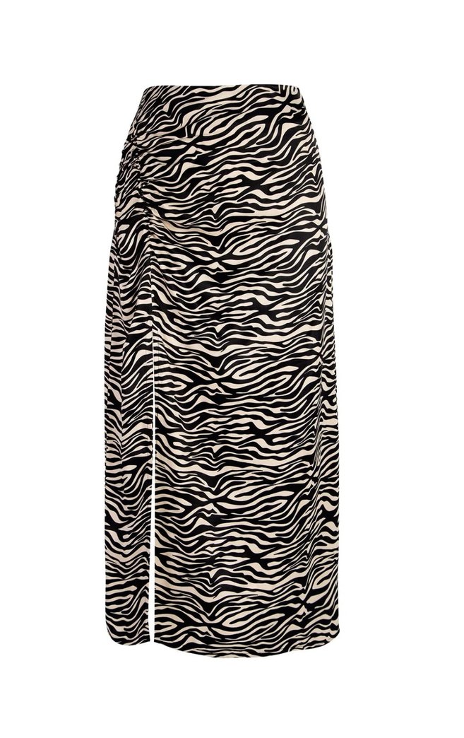 Zebra Desenli Pilili Uzun Midi Etek