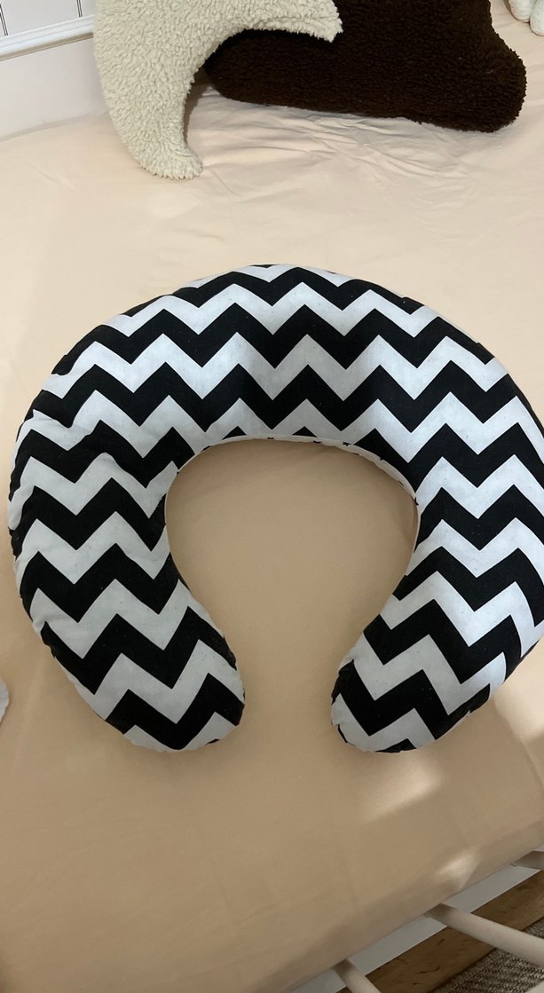 Siyah zebra desenli hamile ve emzirme yastığı, hamilelik ve emzirme dönemlerinde destek sağlar.