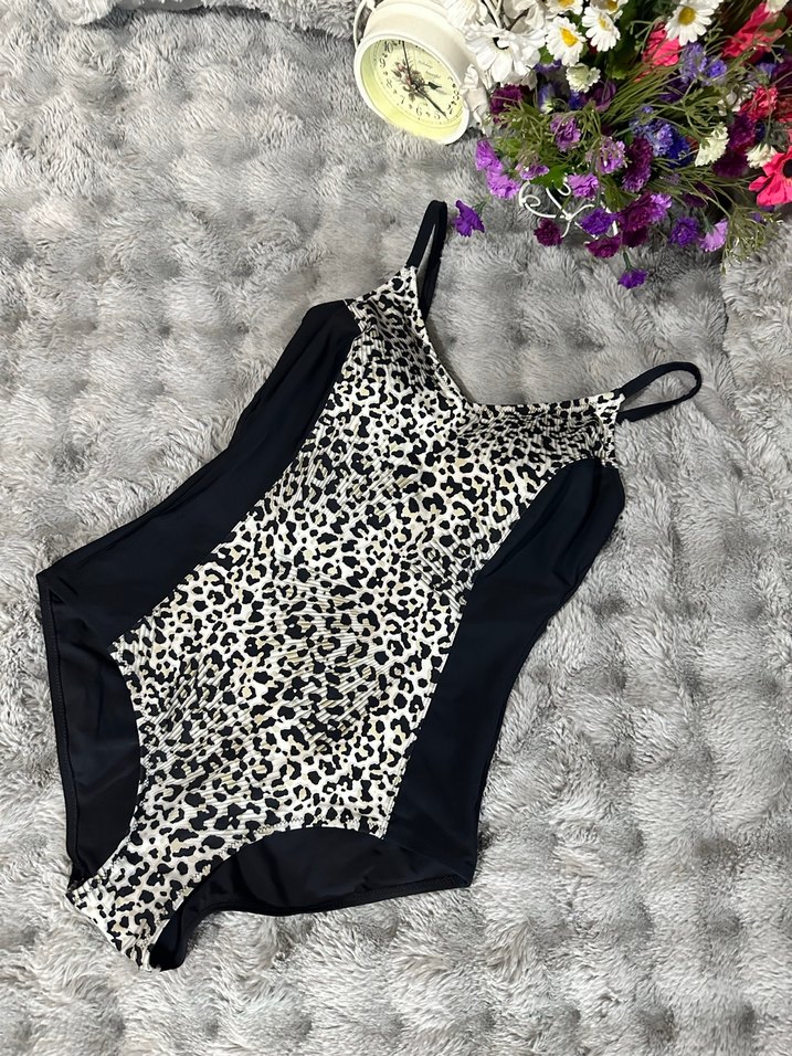 Bu kadın mayosu, zebra desenli ve siyah yan detaylıdır. Strappy askılara ve kürk detaylara sahiptir. Midi uzunlukta ve dış mekan kullanımı için uygundur.